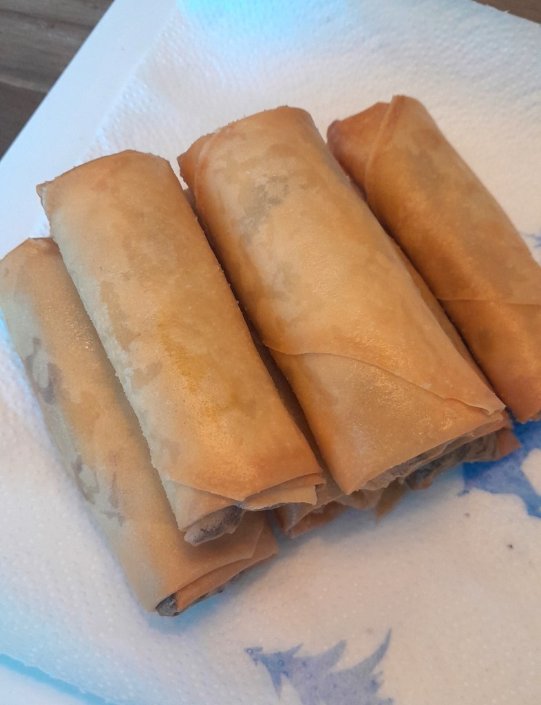 Apart from the lumpia/popiah/spring rolls, the rest of the meal is prepared in about 15 minutes! I made the lumpia/popiah/spring rolls a week before and kept them frozen. While making them from scratch took at least 40 minutes, it took less than 15 minutes to defrost, deep-fry, and have them ready for lunch. They’re best served warm, but I also enjoy them at room temperature.
